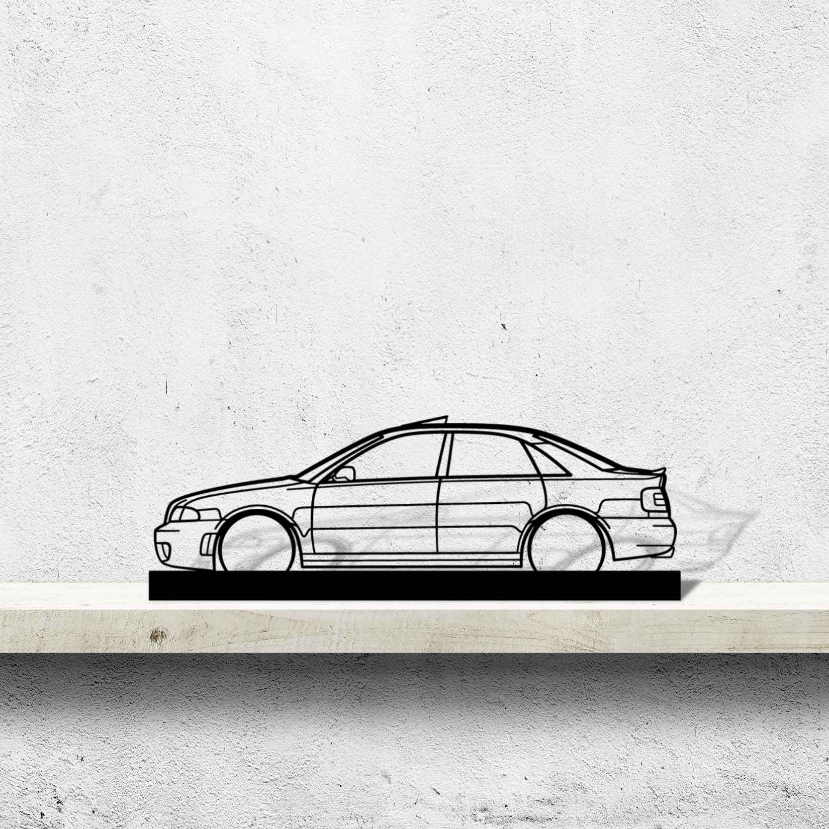 Diese RS4 B5 sedan Silhouette-Kunstständer aus Metall verleiht Ihrem Schreibtisch, Wohnzimmer oder Ihrer Garagenablage einen einzigartigen Look, der die Aufmerksamkeit aller Rennsport- und Autoliebhaber auf sich zieht und Ihrem Wohndesign eine subtile Note verleiht.