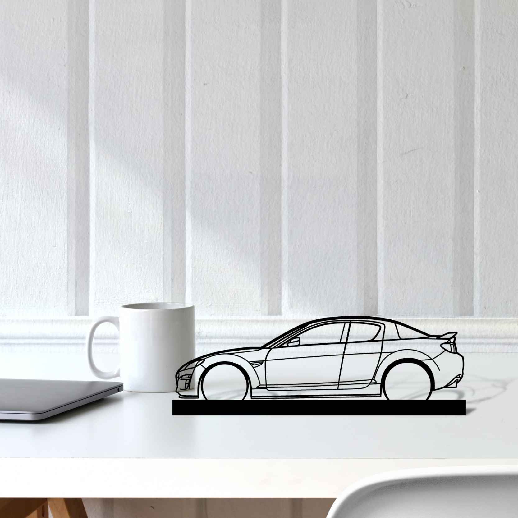 Diese RX8 Silhouette-Kunstständer aus Metall verleiht Ihrem Schreibtisch, Wohnzimmer oder Ihrer Garagenablage einen einzigartigen Look, der die Aufmerksamkeit aller Rennsport- und Autoliebhaber auf sich zieht und Ihrem Wohndesign eine subtile Note verleiht.