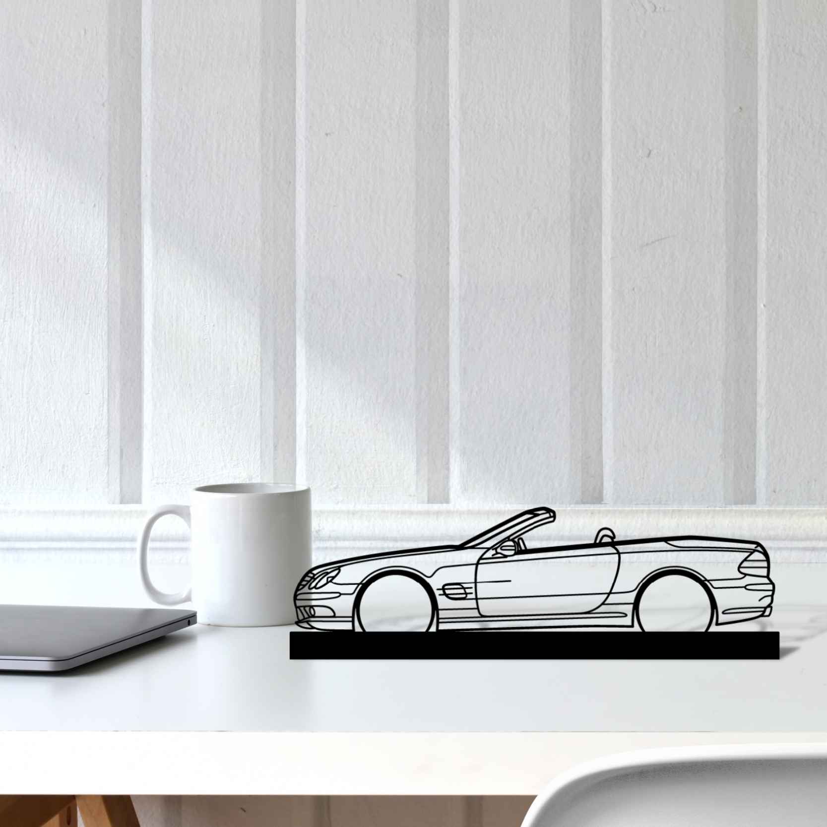 Diese SL55 R230 Silhouette-Kunstständer aus Metall verleiht Ihrem Schreibtisch, Wohnzimmer oder Ihrer Garagenablage einen einzigartigen Look, der die Aufmerksamkeit aller Rennsport- und Autoliebhaber auf sich zieht und Ihrem Wohndesign eine subtile Note verleiht.