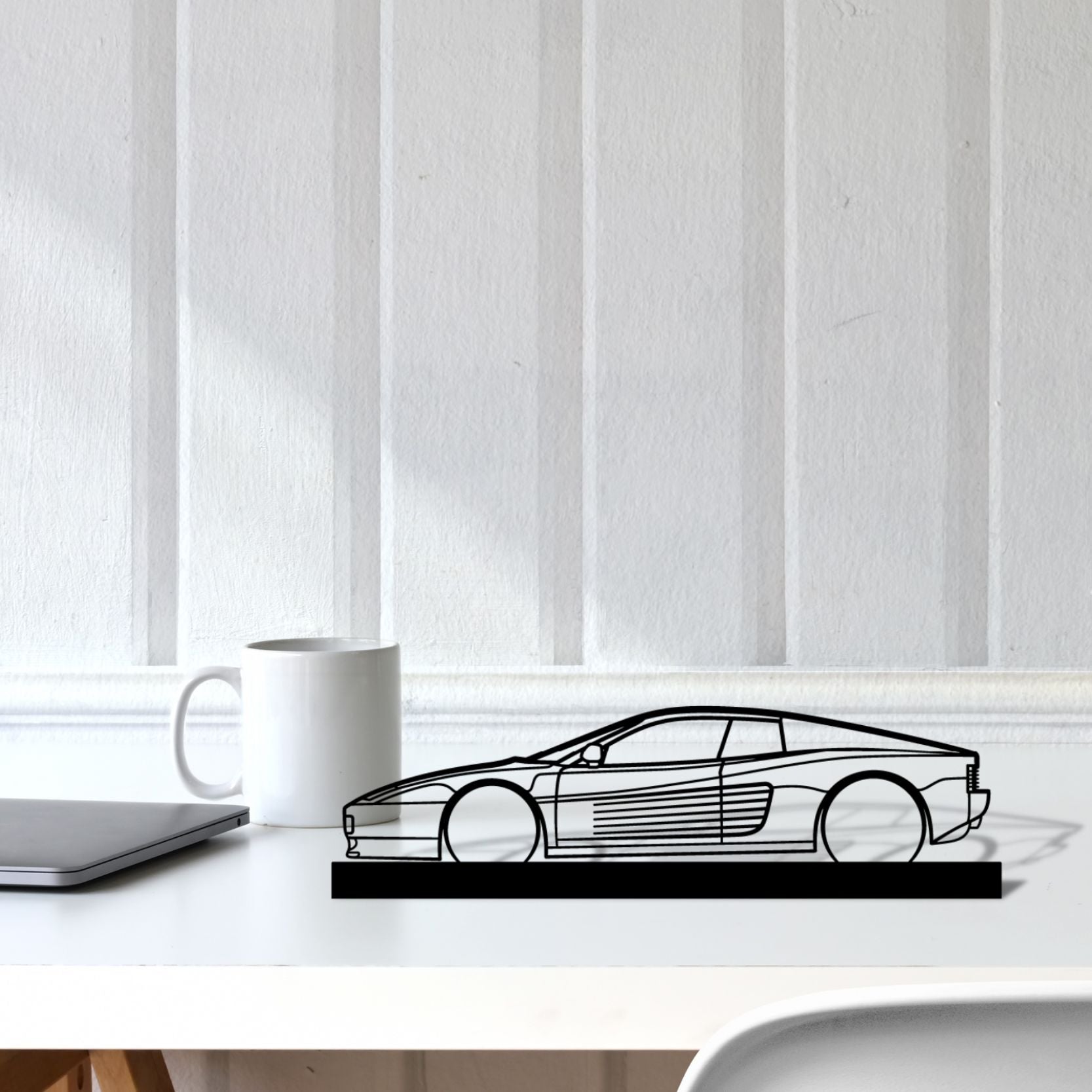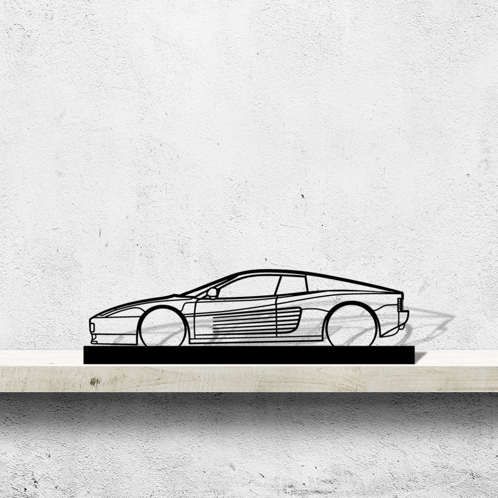 Diese Testarossa Silhouette-Kunstständer aus Metall verleiht Ihrem Schreibtisch, Wohnzimmer oder Ihrer Garagenablage einen einzigartigen Look, der die Aufmerksamkeit aller Rennsport- und Autoliebhaber auf sich zieht und Ihrem Wohndesign eine subtile Note verleiht.