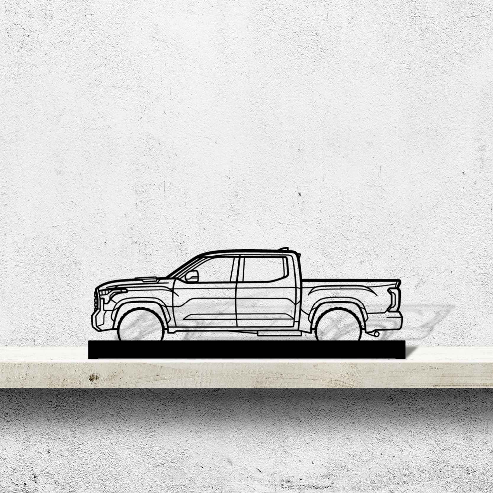 Diese TUNDRA 2022 Silhouette-Kunstständer aus Metall verleiht Ihrem Schreibtisch, Wohnzimmer oder Ihrer Garagenablage einen einzigartigen Look, der die Aufmerksamkeit aller Rennsport- und Autoliebhaber auf sich zieht und Ihrem Wohndesign eine subtile Note verleiht.