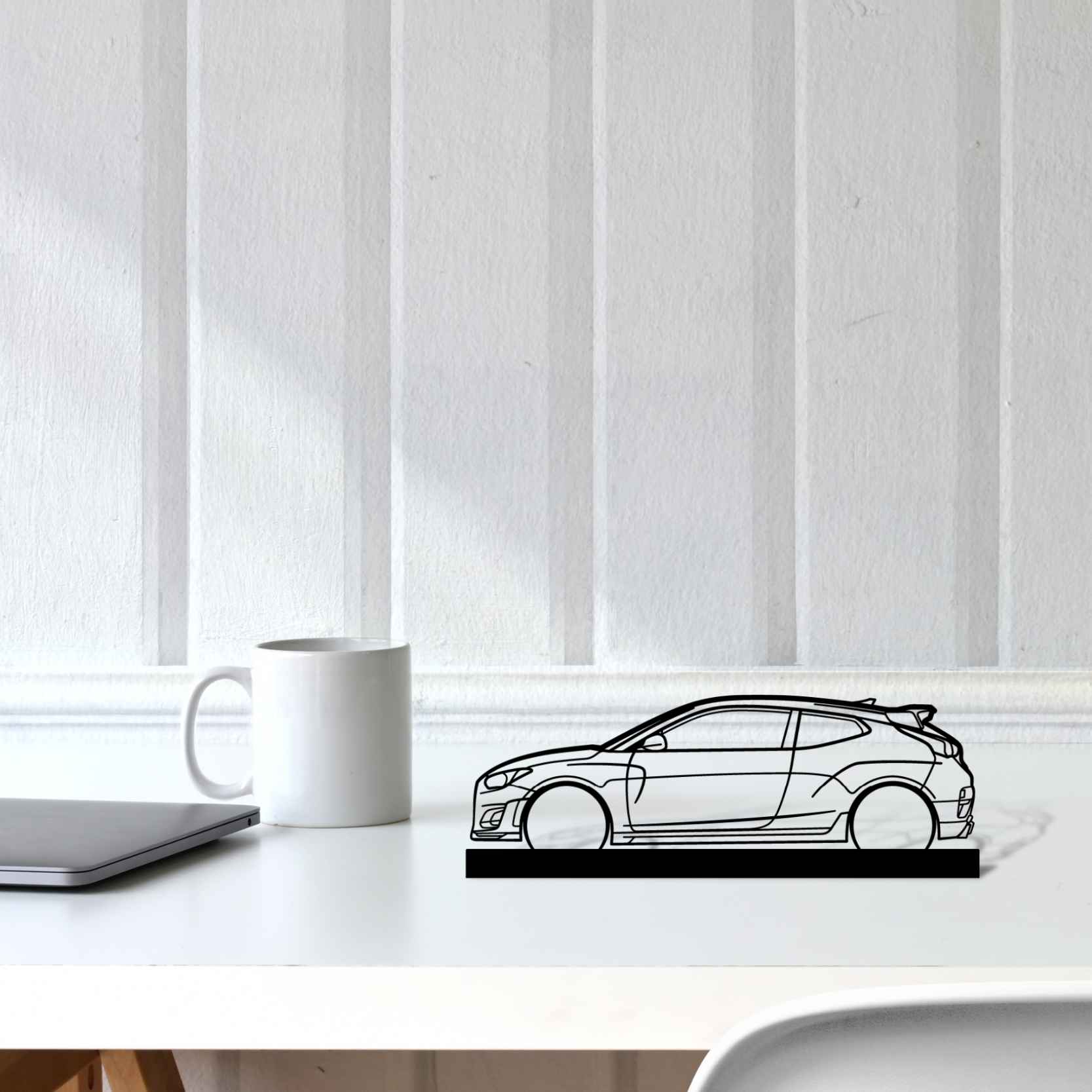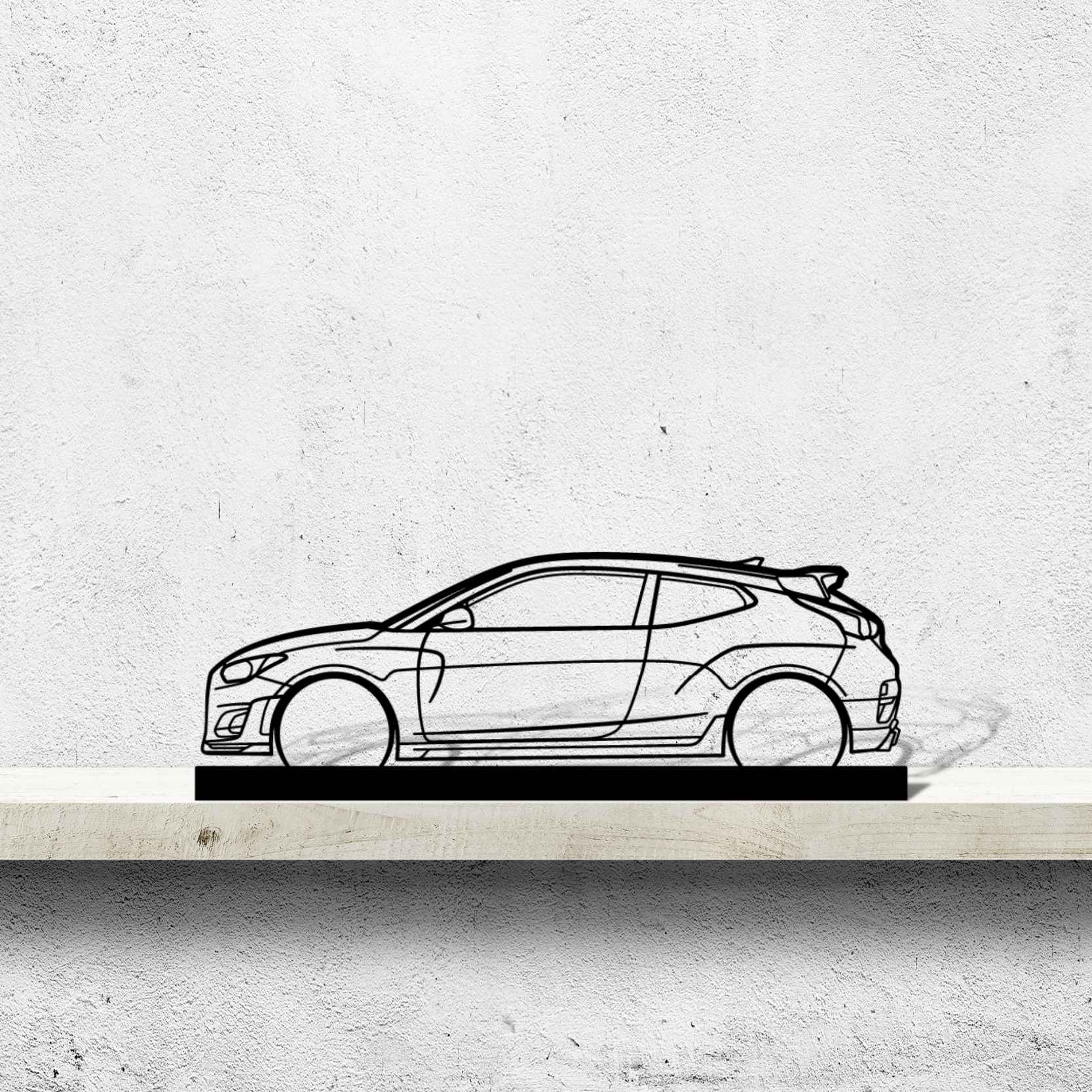 Diese Veloster N Silhouette-Kunstständer aus Metall verleiht Ihrem Schreibtisch, Wohnzimmer oder Ihrer Garagenablage einen einzigartigen Look, der die Aufmerksamkeit aller Rennsport- und Autoliebhaber auf sich zieht und Ihrem Wohndesign eine subtile Note verleiht.