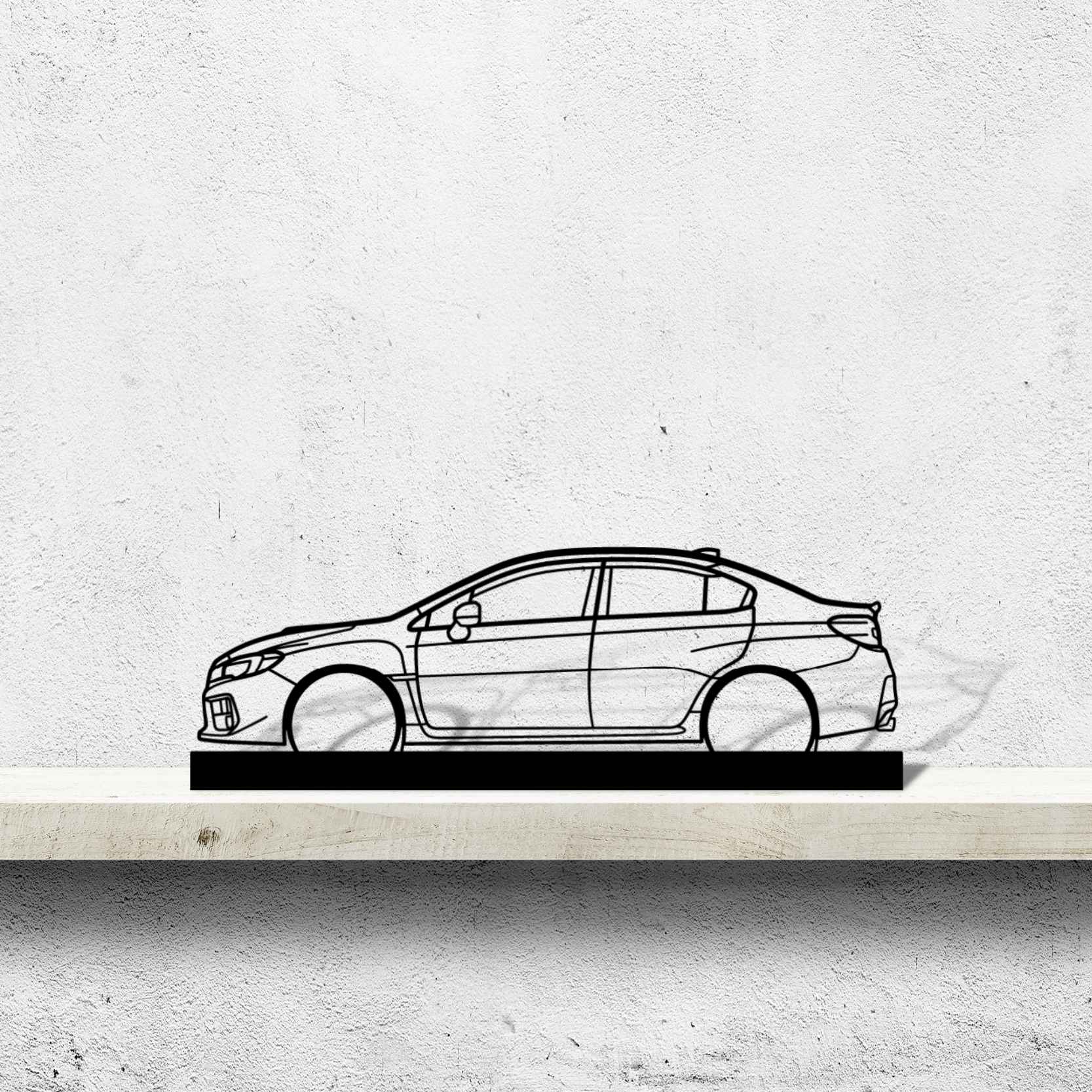 Diese WRX STI 2018 Silhouette-Kunstständer aus Metall verleiht Ihrem Schreibtisch, Wohnzimmer oder Ihrer Garagenablage einen einzigartigen Look, der die Aufmerksamkeit aller Rennsport- und Autoliebhaber auf sich zieht und Ihrem Wohndesign eine subtile Note verleiht.