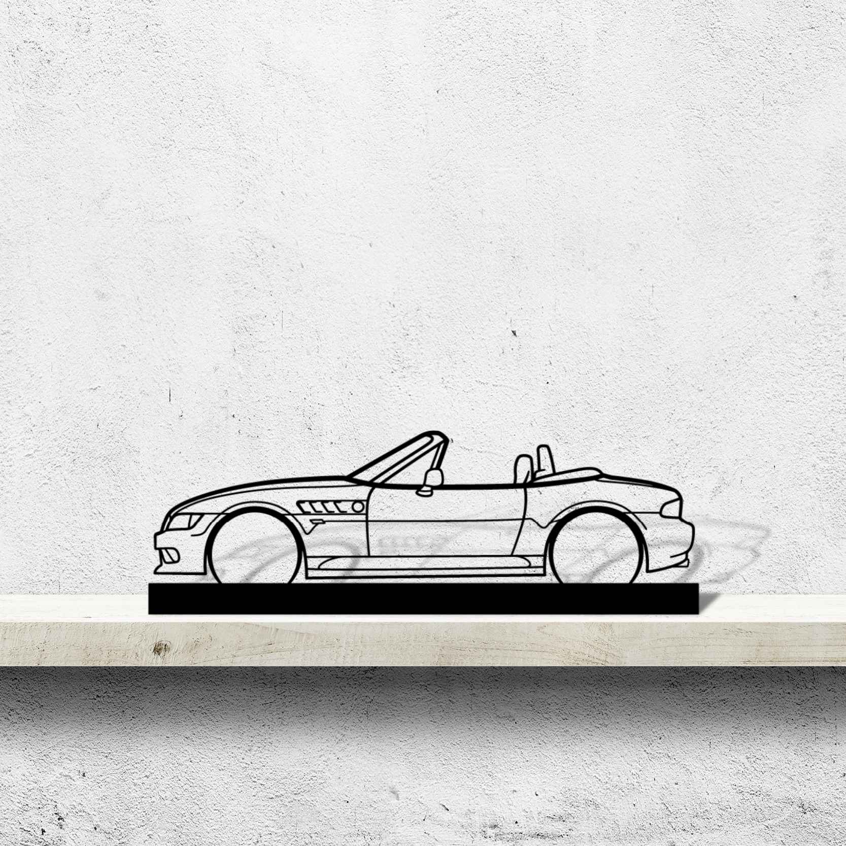 Diese Z3 Silhouette-Kunstständer aus Metall verleiht Ihrem Schreibtisch, Wohnzimmer oder Ihrer Garagenablage einen einzigartigen Look, der die Aufmerksamkeit aller Rennsport- und Autoliebhaber auf sich zieht und Ihrem Wohndesign eine subtile Note verleiht.